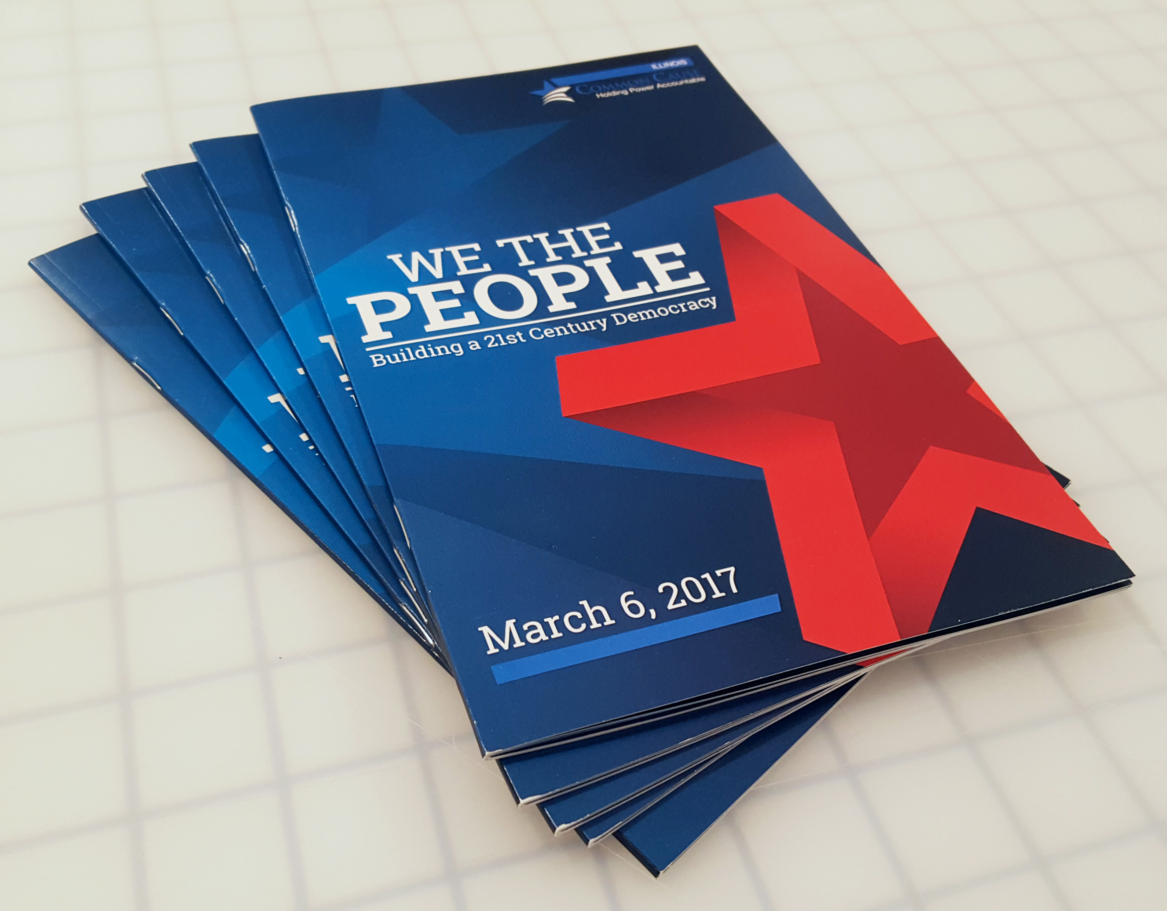 Developed collateral for non-profit organization, Common Cause. Theme to design around was "We The People". Bold, contrasting colors and a slab typeface accompany eye-moving design elements to keep viewers interested while being informed.